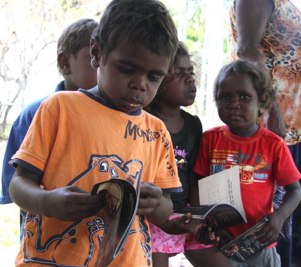 As comunidades aborígines na Austrália estão a espalhar a palavra. Criaram o seu próprio logotipo da YHRI e estão a ensinar os Direitos Humanos a jovens e adultos nas cidades, nas áreas rurais e no interior da Austrália.